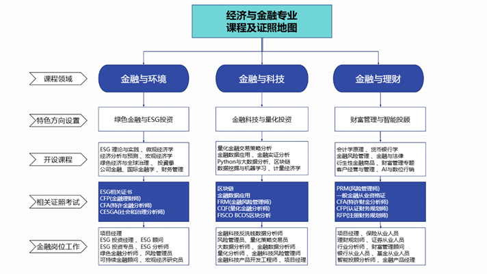 坚持“知行合一、立德树人”本专业面向粤港澳大湾区;依据《国家 “十四五” 规划》强调支持大湾区建设国际科技创新中心,发展金融科技、绿色金融、金融理財等领域。结合大湾区的产业升级和转型;本专业坚持价值引领为先;旨在培养适应现代国际化产业金融创新发展人才需求;课程领域包括金融与环境、金融与科技及金融与理财三大领域;具有能掌握数据分析、区块链、人工智能等技术,同时了解国际金融市场规则。掌握数字化转型及智能信息新技术;适应多变的金融环境;熟练掌握人工智能技术在金融领域的应用方法,毕业后可在银行、证券、保险等金融机构行业,以及企业财务部门从事金融理财、金融分析、风险管理及投资决策等工作,具有创新精神勇于担当;善于学习;敢于超越和实践能力的高素质应用型经济与金融创新人才。