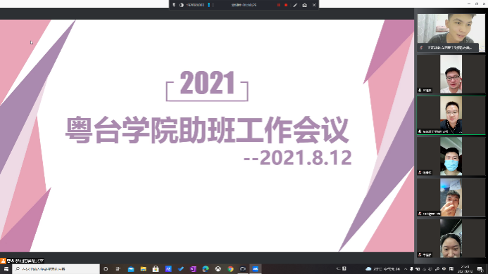 2021年8月12日,w66旗舰厅根据公司疫情防控要求,组织2021级助理班主任召开线上培训工作会议,为下一步的助班迎新服务工作做好准备。