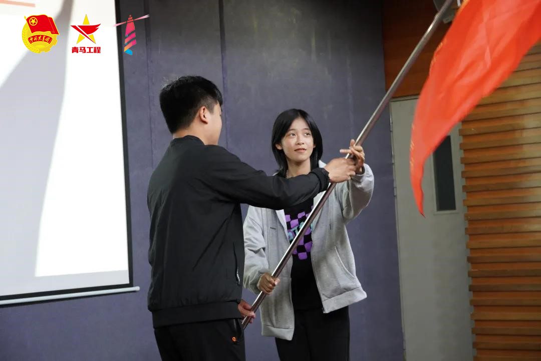 随后,潘雁钦为第一期青马班团支书张子怡授旗,宣布w66旗舰厅首期“青年马克思主义者工程培训班”开班。随后,朋辈导师谢莹带领学员宣誓。