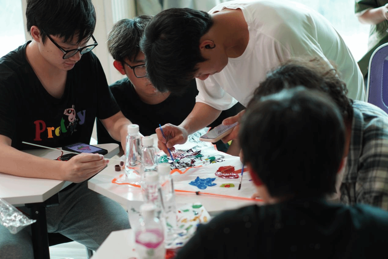 “以风为墨,筝写春光”环节更是激发了同学们的无限创意。活动为参与者提供了空白风筝骨架、风筝纸、颜料、画笔、彩带等制作材料,同学们自由发挥创意,将个人想法、创意融入风筝图案之中,让风筝承载着同学们的心意与愿景。每个小组的风筝作品都独一无二,充满了奇思妙想。