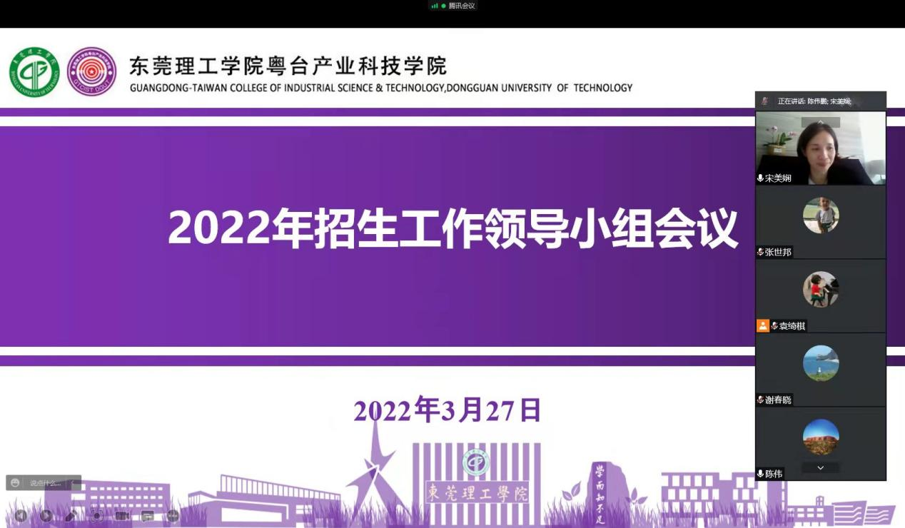 3月27日,公司召开2022年上半年招生工作领导小组会议。会议由公司书记、公司招生工作领导小组组长宋美娴主持,公司经理、招生工作领导小组副组长陈伟、院领导谢春晓、各系主任、各部门负责人通过腾讯会议参会。