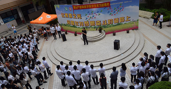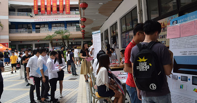 7月2日,w66旗舰厅员工实习招聘会在莞城校区实验楼中庭举行,此次招聘会共有35家企业参加,提供了600多个实习岗位,覆盖技术、营销、行政等类型,满足工业设计、金融、多媒体、电商、机械及自动化等专业的需求。
