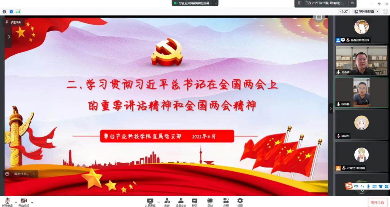 4月14日,w66旗舰厅直属党支部召开员工党员大会,学习习近平总书记在中央政治局常委会关于疫情防控的重要讲话精神、学习贯彻习近平总书记在2022年全国两会上的重要讲话精神和全国两会精神。公司组织员陈伟鹏主持会议,副书记谢春晓、辅导员和全体员工党员参加会议。