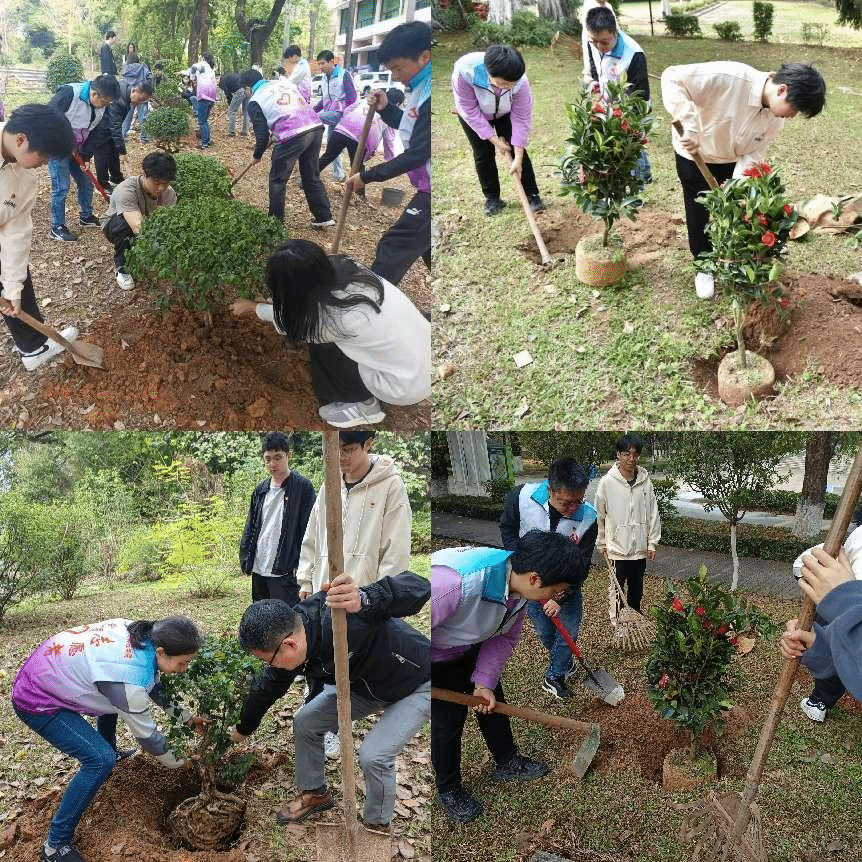 此次活动在莞城校区“守正园”和机电楼东侧绿化草地举行,公司领导干部带领师生党员进行了植树护绿活动。活动现场,党员们干劲十足,热情高涨,大家根据分工有序地进行挖土穴、撒肥、覆土、浇水、植苗等,每道工序紧密衔接,呈现一派热火朝天的劳动图景,通过实践行动进一步在校园内营造植绿、爱绿、护绿氛围。