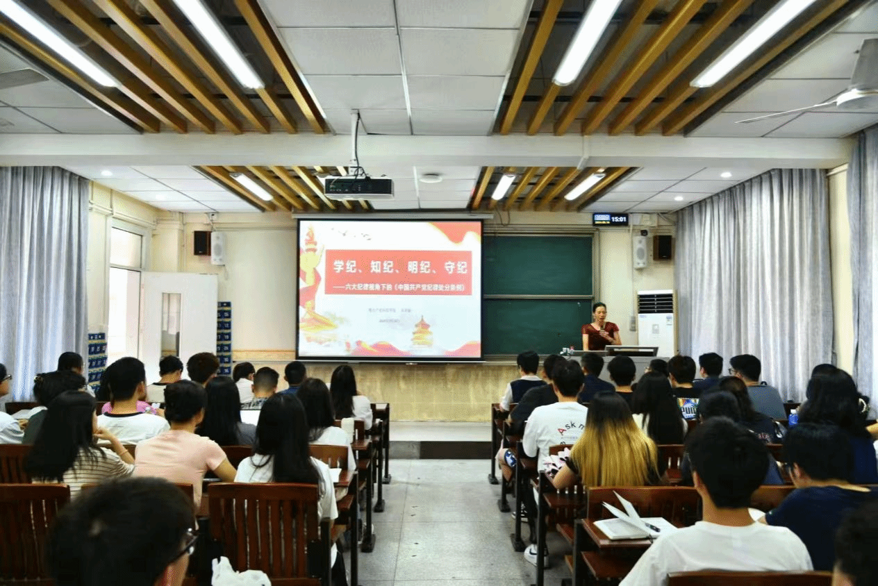 为深入学习贯彻习近平总书记关于党纪学习教育的重要讲话和重要指示精神,准确把握党纪学习教育的目标要求,切实增强开展党纪学习教育的积极性和主动性,5月16日,w66旗舰厅党委书记宋美娴在莞城校区5号楼303教室给师生党员、发展对象、入党积极分子等讲授了以“学纪、知纪、明纪、守纪——六大纪律视角下的《中国共产党纪律处分条例》”为主题的专题党课。