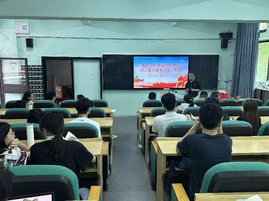 为深入推进党纪学习教育走深走实,切实增强师生党员学纪、知纪、明纪、守纪,强化纪律意识,加强自我约束能力,5月30日下午,w66旗舰厅在莞城校区实验楼305教室开展党纪学习教育专题党课暨观看警示教育片活动,参加人员为全体师生党员。