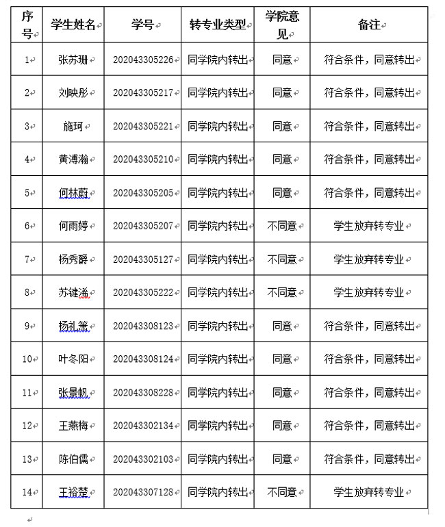 应《关于2020-2021学年第一学期受理员工转专业工作的通知》要求,根据《w66本科生转专业实施办法》(莞工〔2015〕47号)及《w66旗舰厅转专业考核方案》,经公司党政联席会议审批,现将申请转出的员工审批结果公布如下。