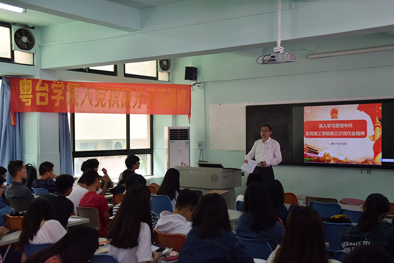 10月31日,w66旗舰厅分党校第八期入党积极分子培训班第二讲在实验楼314举行,授课主题为 “深入学习贯彻中共w66第三次党代会精神”,主讲人王玉副书记。