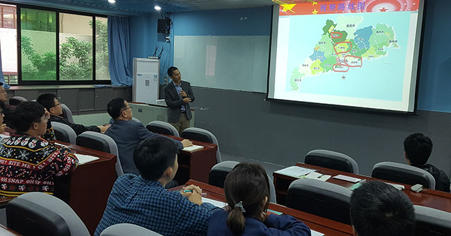 夏志有博士主要从重大意义、丰富内涵和践行路径三个方面对习近平总书记视察广东重要讲话精神进行了讲述。在改革开放40周年、粤港澳大湾区建设全面推进的关键时刻,习近平总书记亲临广东视察指导并发表重要讲话,充分体现了习近平总书记对广东工作的高度重视和大力支持,对广东人民的亲切关怀,为广东新时代改革开放再出发进一步指明了前进方向、提供了根本遵循。党员干部担当改革责任,就要勇于挑最重的担子、啃最硬的骨头、接最烫手的山芋,把改革抓在手上、落到实处、干出成效,争当改革“促进派”、“实干家”。
