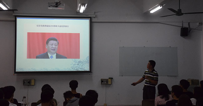 9月14日上午,w66旗舰厅经理陈伟教授,在机电楼312教室为17级机械、经济与金融、自动化专业的同学们上了一节思政课。主要内容是:如何看待马克思主义对当今世界的现实意义?——从全球的马克思热说起。