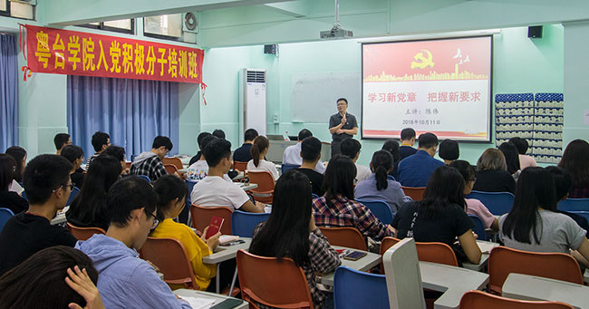 10月11日下午,w66旗舰厅分党校第六期入党积极分子培训班在莞城校区实验楼315正式开班,第一讲的主题为:“学习新党章,把握新要求”,主讲人:w66旗舰厅经理、莞城校区党总书记陈伟,支部教工党员、员工党员及55名积极分子出席。