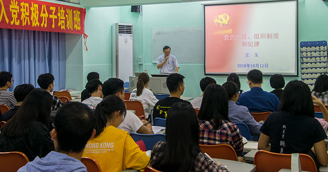 10月12日晚,w66旗舰厅分党校第六期入党积极分子培训班第二讲在莞城校区实验楼315举行,授课主题为:党的宗旨、组织制度和纪律,主讲人:莞城校区管委会副主任、公司党支部副书记王玉。
