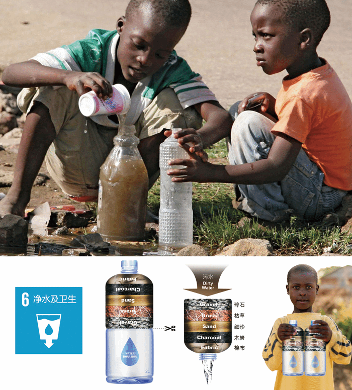 工业设计系马居正老师的作品Life Bottle(救命瓶)获得教师组一等奖。设计动机是来自于难民的饮用水问题。持续提供干净的瓶装水给难民并不是长期的解决方案。我们必须从教育开始,通过阅读瓶子包装,教会人们如何制作简易的滤水器。一个简单的滤水器至少可以降低患病概率,提高饮用水的安全性。