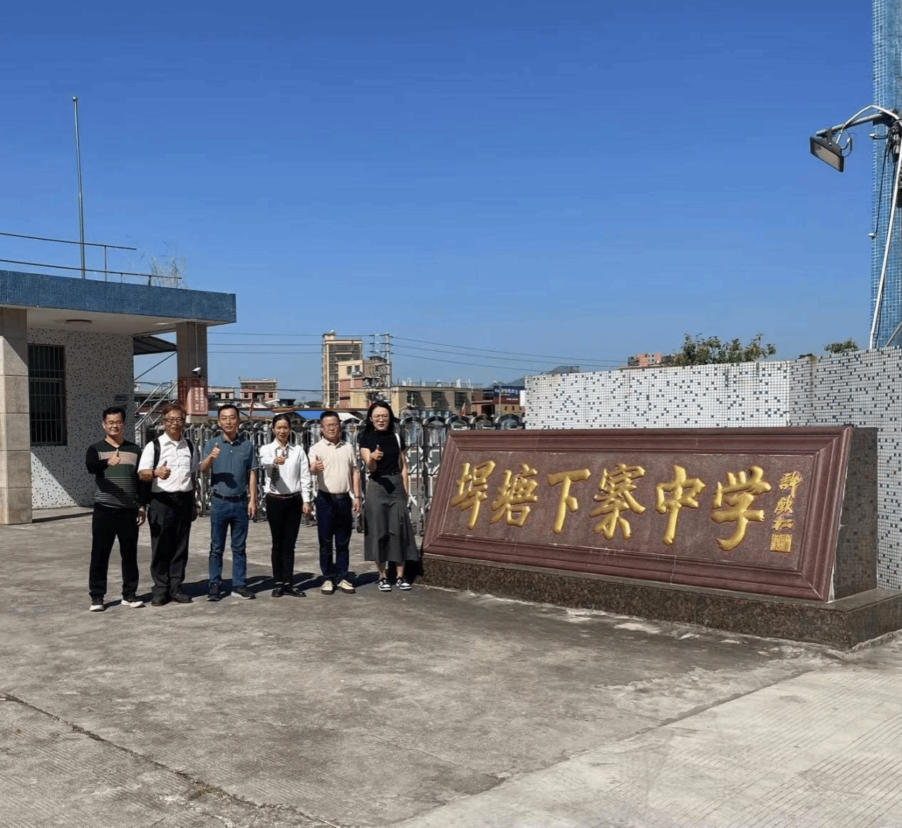 为深入贯彻落实公司关于“双百行动”的工作要求,扎实推进“双百行动”各项工作落地落实,11月8日,公司党委书记宋美娴、副经理谢春晓率专任教师陈权教授等一行赴普宁市下寨村,为垾塘下寨中学送课,并与下寨村党支部委员陈伟彬进一步交流接下来的合作共建内容。