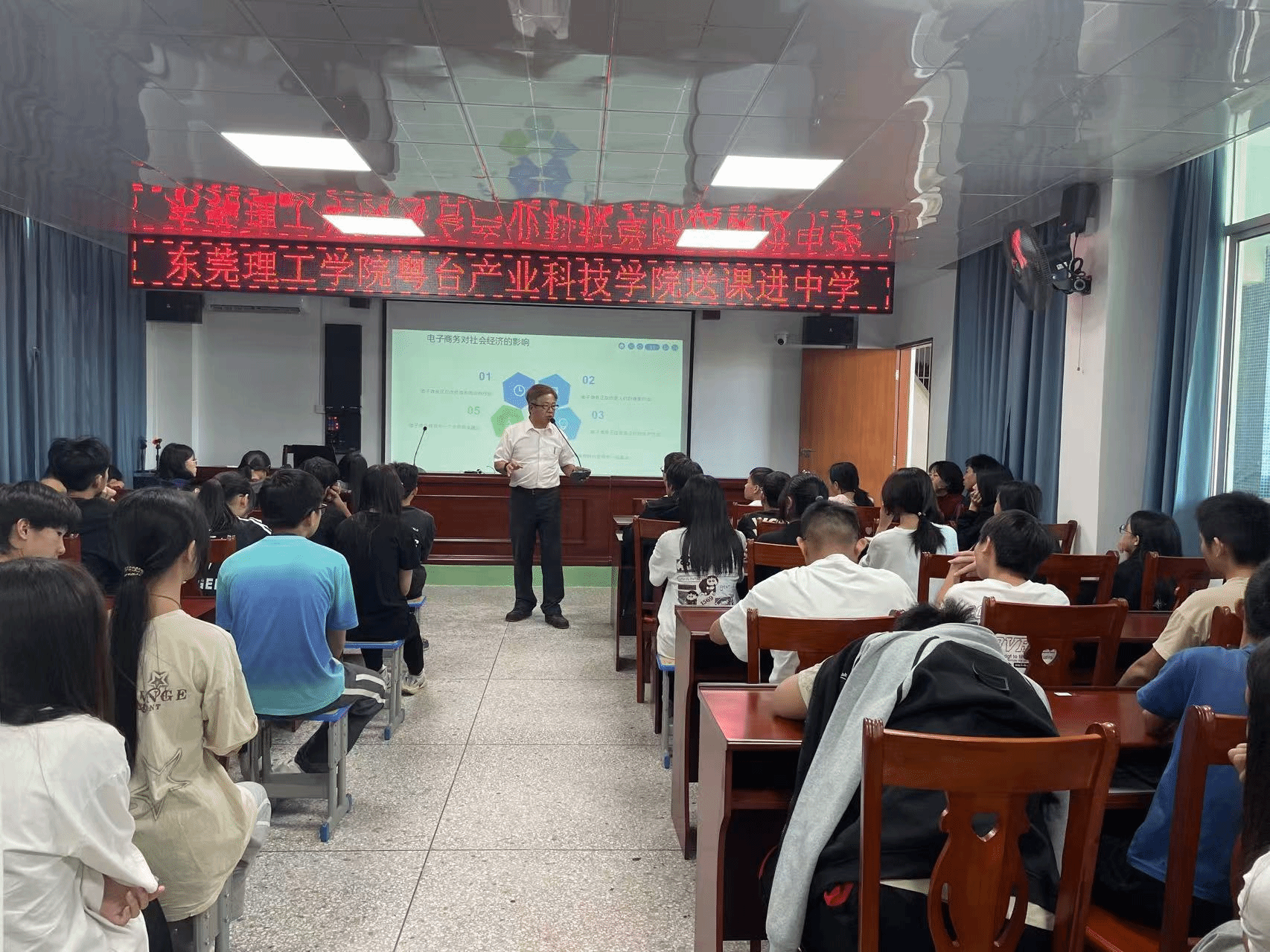 公司了解到垾塘下寨中学的大部门员工毕业后会进入中专公司继续深造,而电商作为当前社会热门且能带动乡村经济的行业,员工在中学阶段接触到的相关技能知识较少,公司陈权教授便为该校员工们送上了一堂生动的电商课堂,通过生动的案例和深入浅出的讲解,向员工们介绍了电商的基本概念、运营模式、营销策略及未来的发展趋势等内容。通过与员工们的互动交流,不仅帮助员工对电商有更深入的认识,还激发了他们对电商行业的兴趣和热情。