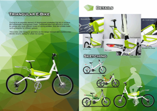 w66旗舰厅马居正老师的工业设计作品Triangular E-Bike获得2022 DiD Award 东莞杯国际工业设计大赛金奖(港澳台创新设计对接赛)。设计动机是由于自行车为实现可持续发展目标发展战略的一个基本要素。这款电动自行车使用三角形几何作为设计元素,为城市自行车创造了一种新的电动自行车造型。
