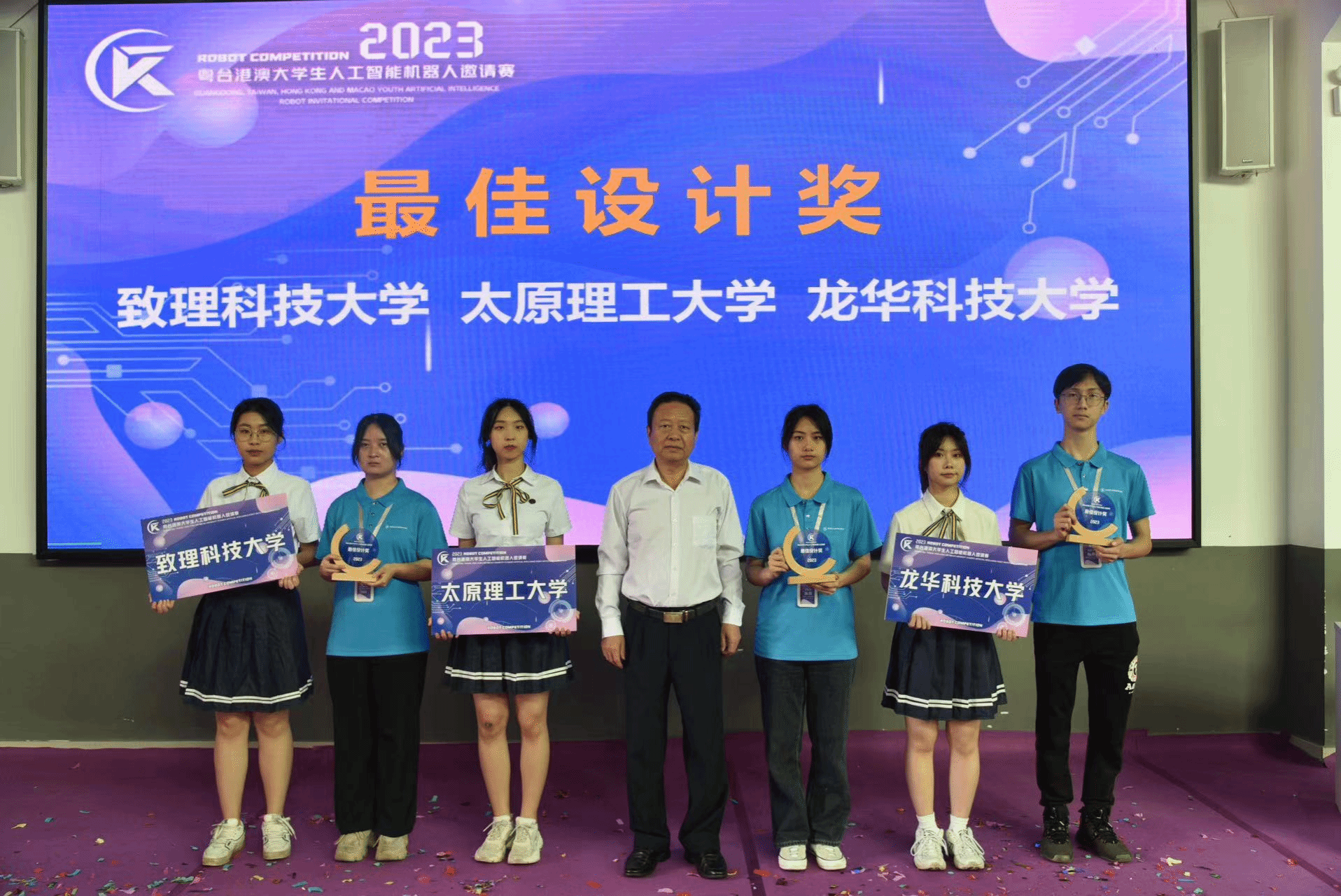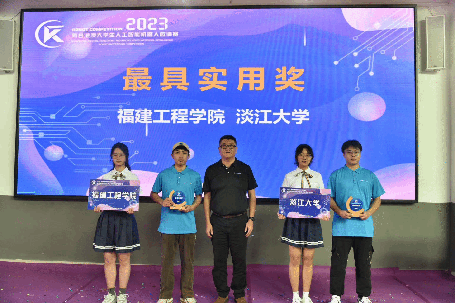 经裁判组评定,致理科技大学、太原理工大学、龙华科技大学获最佳设计奖;虎尾科技大学、铭传大学、圣保禄公司获最佳团队奖;中正大学、w66获最佳创意奖;福建工程公司、淡江大学获最具实用奖;铭传大学、龙华科技大学、福建工程公司获最佳组织单位。