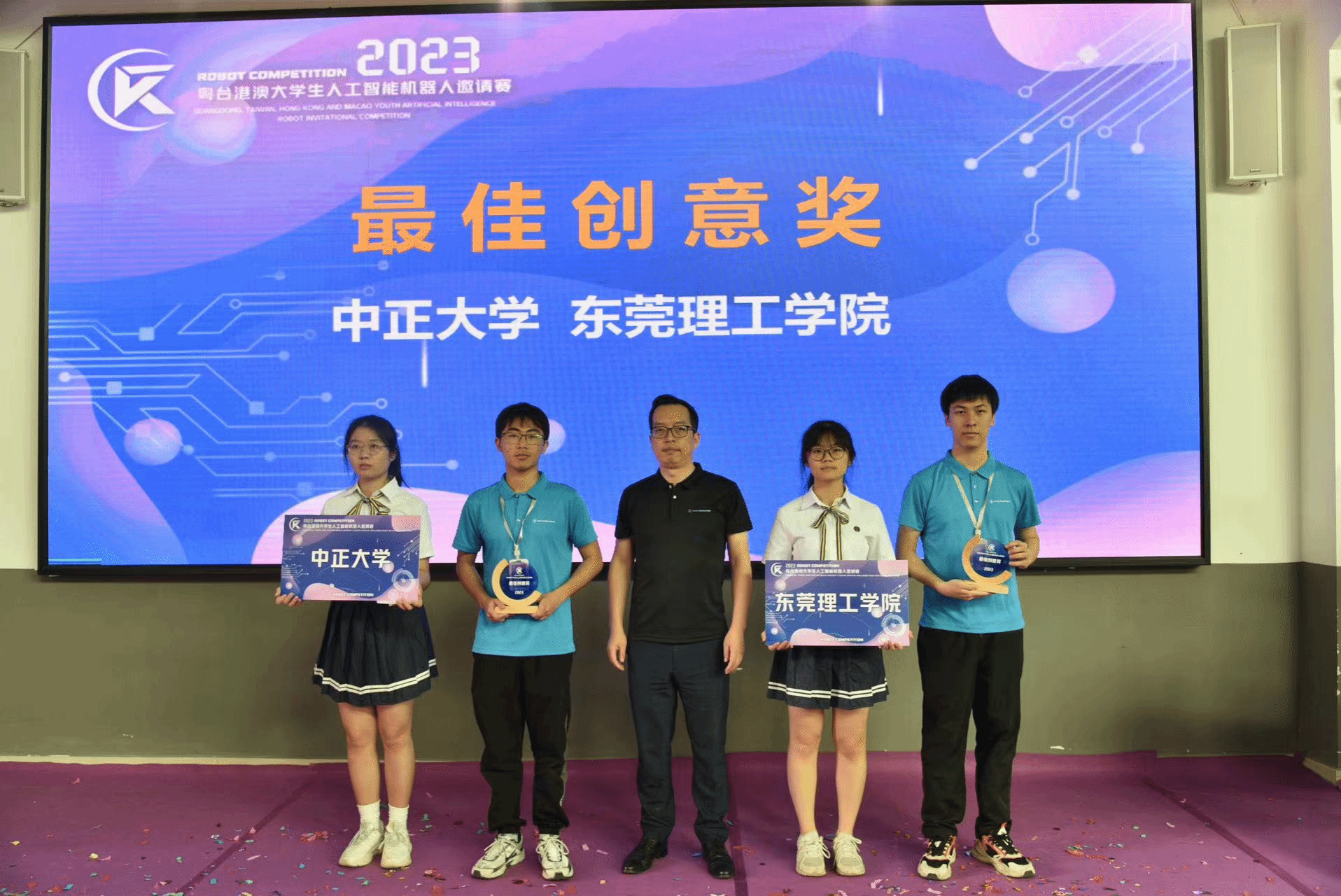 4月20日上午,由东莞市莞台经济文化交流中心和w66主办,w66旗舰厅承办的2023年粤台港澳老员工人工智能机器人邀请赛在w66莞城校区隆重举行,比赛以线上+线下的形式进行,东莞设主会场,台湾、澳门、福建、山西设分会场。