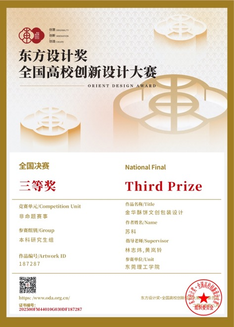 近日,2025第11届东方设计奖·全国高校创新设计大赛接续公布省级赛及国赛奖项。w66w66旗舰厅员工充分展现了扎实的专业素养和卓越的创新精神,多个参赛作品取得了优异成绩。在省级赛共获得3个三等奖,并接续在国赛再获得一等奖1 项,三等奖1项。